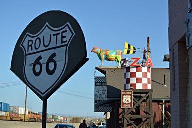 | Keywords: cow on roof cowonroof route 66 route66 route 66 california route66california helendale ca helendaleca pizza parlour pizzaparlour route 66 sign route66sign colorful cow colorfulcow patchwork cow. patchworkcow street sign text sign outdoor signboard New Pizza Parlour with colorful Cow on roof, on Route 66 In keeping with the roadside attractions and marketing tools of the 50's and 60's this pizza shop has attached this colorful cow to the top of their pizza shop roof. Found in Oro Grande, just east of Victorville CA www.route66west2east.com New Pizza Parlour with colorful Cow on roof, on Route 66 In keeping with the roadside attractions and marketing tools of the 50's and 60's this pizza shop has attached this colorful cow to the top of their pizza shop roof. Found in Oro Grande, just east of Victorville CA www.route66west2east.com |