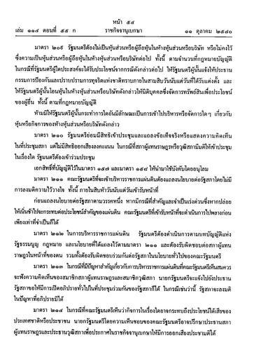 | Keywords: S209-1997Con-01.jpg en Page 54 of the Government Gazette Volume 114/Part 55 A/Dated October 11 1997 on which sections 209-214 of the Constitution of the Kingdom of Thailand BE 2540 1997 were published Section 209 prohibited holders of political positions from conflict of interest This is a page of Thai legislation which is not a copyright-work under Thailand's Copyright Act BE 2537 1994 th หน้า ๕๔ ของราชกิจจานุ บกษา ล่ม ๑๑๔/ตอนที่ ๕๕ ก/ลงวันที่ ๑๑ ตุลาคม ๒๕๔๐ ซึ่งประกาศ มาตรา ๒๐๙-๒๑๔ ของรัฐธรรมนูญแห่งราชอาณาจักรไทย พุทธศักราช ๒๕๔๐ หน้านี้ ป็นส่วนหนึ่งของกฎหมายไทย ซึ่งไม่ ป็นงานอันมีลิขสิทธิ์ตามพระราชบัญญัติลิขสิทธิ์ พ ศ ๒๕๓๗ own Clumsy 2010-04-19 PD-TH-exempt 100px 100px Thaksin Shinawatra's assets confiscation case |