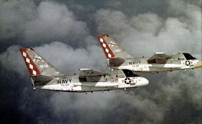 | Keywords: S-3A Vikings of VS-30 in flight 1981.jpg Two U S Navy Lockheed S-3A Viking BuNo 160144 160155 of Anti-Submarine Squadron VS-30 Diamondcutters in flight VS-30 was assigned to Carrier Air Wing 17 CVW-17 aboard the aircraft carrier USS Forrestal CV-59 for a deployment to the Mediterranean Sea from 2 March to 15 September 1981 U S Navy photo http //www navysite de/cruisebooks/cv59-81/270 htm from the http //www navysite de/cruisebooks/cv59-81/index_027 htm USS Forrestal CV-59 1981 cruise book available at http //navysite de/cruisebooks/index html Navysite de 1981 USN PD-USGov-Military-Navy S-3A Viking Sea Control Squadron 30 United States Navy |