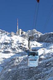 Keywords: säntis snow mountains panorama switzerland säntis swiss alps mountain station transport cable car public means of transport appenzell winter switzerland cell towers landscape view vision schwebebahn viewpoint sky blue partly cloudy