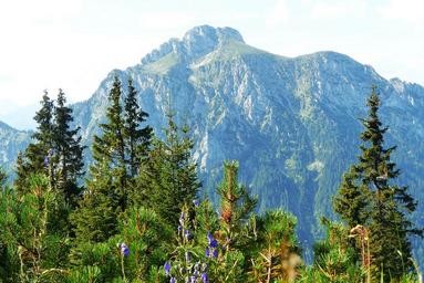 Keywords: säuling from the tegelberg allgäu mountains forest nature summer idyllic monkshood mountain pine spruce