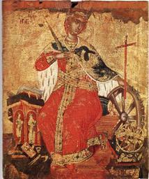 Keywords: S. Catherine (Greece, 17 c.).jpg Святая Екате ина 2-я пол XVII века press photo 2nd h 17 c anonymous Synaxis exhibition Uploaded by Shakko/Photos Icons of Saint Catherine Ermine clothing in art PD-Art