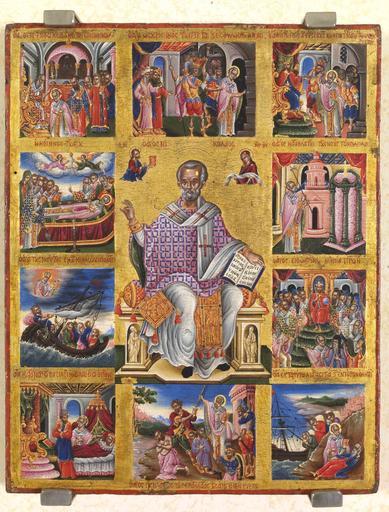 | Keywords: S. Nicholas by T.Poulakis (?), 17th c.jpg Ο Άγιος ικόλαος και σκηνές α ό τον βίο του δεύτερο μισό του 17ου αιώνα 24 5x30εκ Θεόδωρος Πουλάκης ; Στο κεντρικό τμήμα της εικόνας βρίσκεται ο άγιος ικόλαος καθισμένος σε μαρμάρινο θρόνο ου διακοσμείται με ανάγλυφους ολόσωμους ροφήτες σε μονοχρωμία Στο χρυσό βάθος ο Χριστός και η Παναγία του ροσφέρουν ευαγγέλιο και ωμοφόριο σύμφωνα με την αράδοση ου βασίζεται στον βίο του αγίου Γύρω του υ άρχουν δέκα εικονίδια με ε εισόδια α ό τη ζωή του και τα θαύματα του αγίου Mε φορά α ό άνω ρος τα δεξιά ο άγιος χειροτονείται ε ίσκο ος ρίχνεται στη φυλακή α ελευθερώνεται με διαταγή του Κωνσταντίνου καταστρέφει τα είδωλα συμμετέχει στη σύνοδο της ικαίας φέρνει τροφή στον έμ ορο στα ύρα διασώζει τους στρατηγούς α ό την εκτέλεση εμφανίζεται στο όνειρο του Κωνσταντίνου και του Αβλάβιου διασώζει τους ναύτες και στο τελευταίο αριστάνεται η Κοίμηση του αγίου http //eib xanthi ilsp gr/gr/icons asp cursort iconTitle selectFieldValue vpage 3 second half of the 17th century Theodoros Poulakis Emmanuel Lambardos Files uploaded by Shakko from various sources Theodoros Poulakis PD-old Icons of Saint Nicholas from Greece S. Nicholas by T.Poulakis (?), 17th c.jpg Ο Άγιος ικόλαος και σκηνές α ό τον βίο του δεύτερο μισό του 17ου αιώνα 24 5x30εκ Θεόδωρος Πουλάκης ; Στο κεντρικό τμήμα της εικόνας βρίσκεται ο άγιος ικόλαος καθισμένος σε μαρμάρινο θρόνο ου διακοσμείται με ανάγλυφους ολόσωμους ροφήτες σε μονοχρωμία Στο χρυσό βάθος ο Χριστός και η Παναγία του ροσφέρουν ευαγγέλιο και ωμοφόριο σύμφωνα με την αράδοση ου βασίζεται στον βίο του αγίου Γύρω του υ άρχουν δέκα εικονίδια με ε εισόδια α ό τη ζωή του και τα θαύματα του αγίου Mε φορά α ό άνω ρος τα δεξιά ο άγιος χειροτονείται ε ίσκο ος ρίχνεται στη φυλακή α ελευθερώνεται με διαταγή του Κωνσταντίνου καταστρέφει τα είδωλα συμμετέχει στη σύνοδο της ικαίας φέρνει τροφή στον έμ ορο στα ύρα διασώζει τους στρατηγούς α ό την εκτέλεση εμφανίζεται στο όνειρο του Κωνσταντίνου και του Αβλάβιου διασώζει τους ναύτες και στο τελευταίο αριστάνεται η Κοίμηση του αγίου http //eib xanthi ilsp gr/gr/icons asp cursort iconTitle selectFieldValue vpage 3 second half of the 17th century Theodoros Poulakis PD-old Emmanuel Lambardos Files uploaded by Shakko from various sources Theodoros Poulakis Icons of Saint Nicholas from Greece |