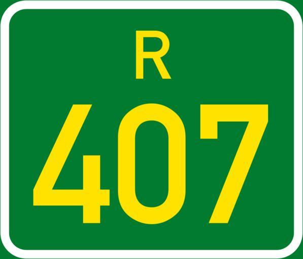 Keywords: SA road R407.svg en South Africa R407 road sign own Htonl 2014-09-02 407 number Diagrams of regional road number signs of South Africa