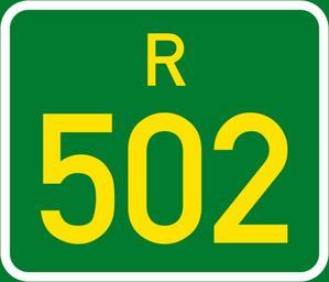 Keywords: SA road R502.svg en South Africa R502 road sign own Htonl 2014-09-13 502 number Diagrams of regional road number signs of South Africa
