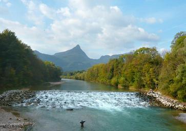 | Keywords: Saalach vom nonnensteg02.jpg Die Saalach ist ein 103 km langer Nebenfluss der Salzach im Land Salzburg in Oesterreich und dem Berchtesgadener Land im Süden Bayerns in Deutschland Im Bild Blick nach Süden vom Nonner Steg aus auf die Saalach bei Bad Reichenhall Saalach River near Bad Reichenhall in Bavaria Germany own Nikater 2009-09-29 Own work all rights released Public domain 47 732307 12 870274 Heading SW ImageNote 1 1042 605 259 273 2796 1972 2 Müllnerhörndl 1263 m ImageNoteEnd 1 Saalach |
