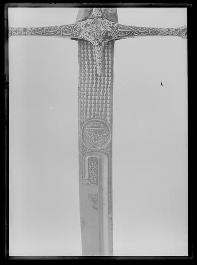 | Keywords: Sabel, kililj, turkiskt kulturområde, klingan 1500-tal, fäste kompletterat, Centraleuropa 1600-1650 - Livrustkammaren - 17996.tif Fäste korsformigt kappa i form av ett gjutet och reliefsnidat kraftigt lejonhuvud av förgyllt silver Pareranordning av guldinlagt mörkanlöpt stål bestående av raka parerstänger med fyrsidigt tvärsnitt och med rundat skivformiga ytterändar raka styrskenor Pareranordningens guldinläggning i form av bladornament arabesker och på parerstängernas sidor arabiska inskriptioner <br/>Kavelklädsel av purpurfärgad silkesammet på ut- och insidan två nithuvuden i form av gravyrmönstrade fyrbladiga rosor <br/><br/>Klinga av kilijtyp eneggad med cirka 245 mm lång tvåeggad jelman och plan klingrygg På båda sidor av bakpartiet ett i guld inlagt fält med ytmönster av små tätt liggande trianglar avslutad med en rundoval medaljong vari arabisk inskription Ovanför medaljongen en kraftig hålkäl med omböjt basparti hålkälen följer klingans spetsparti Utmed sidorna av hålkälens övre omböjda del ett mot eggsidan konturerat i guld inlagt rankmönster På båda sidorna vid ryggkanten närmast jelmanen ett mot eggsidan konturerat i guld inlagt rankmönster På båda sidorna vid ryggkanten närmast jelmanen ett konturerat ytmönster av i guld inlagda trianglar av samma typ som vid klingbasen original caption end other date century 16 steel b12 - blankvapen - fäste och klinga material stål - silver b4 - blankvapen - fästdekor material silver - velvet Färg purpur b4 - blankvapen - fästdekor material sammet - gold b45 - blankvapen - fäste och klingdekor material guld g 1260 size mm 37 klinga size mm 825 klinga size mm 200 size mm 1005 LRK Basutställning Persisk konst i Sverige 1973 Livrustkammarens basutställning 1978 place of origin original filename LN_B05872_008752 50250 inventory number LRK 13679 17996 CC0 Sabel kililj turkiskt kulturområde klingan 1500-tal fäste kompletterat Centraleuropa 1600-1650 - Livrustkammaren - 17996-negative tif <gallery caption Different images of same object > File Sabel kililj turkiskt kulturområde klingan 1500-tal fäste kompletterat Centraleuropa 1600-1650 - Livrustkammaren - 60799 tif File Detalj yxblad ovanifrån dekor sabelkryss - Livrustkammaren - 8565 tif File Sabel kililj turkiskt kulturområde klingan 1500-tal fäste kompletterat Centraleuropa 1600-1650 - Livrustkammaren - 77825 tif </gallery> Media contributed by LSH dim-with multiple size templates Sabre images from Livrustkammaren Kilij Media contributed by LSH 2013-10 |