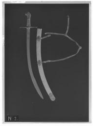| Keywords: Sabel, kililj, turkiskt kulturområde, klingan 1500-tal, fäste kompletterat, Centraleuropa 1600-1650 - Livrustkammaren - 77825-negative.tif Fäste korsformigt kappa i form av ett gjutet och reliefsnidat kraftigt lejonhuvud av förgyllt silver Pareranordning av guldinlagt mörkanlöpt stål bestående av raka parerstänger med fyrsidigt tvärsnitt och med rundat skivformiga ytterändar raka styrskenor Pareranordningens guldinläggning i form av bladornament arabesker och på parerstängernas sidor arabiska inskriptioner <br/>Kavelklädsel av purpurfärgad silkesammet på ut- och insidan två nithuvuden i form av gravyrmönstrade fyrbladiga rosor <br/><br/>Klinga av kilijtyp eneggad med cirka 245 mm lång tvåeggad jelman och plan klingrygg På båda sidor av bakpartiet ett i guld inlagt fält med ytmönster av små tätt liggande trianglar avslutad med en rundoval medaljong vari arabisk inskription Ovanför medaljongen en kraftig hålkäl med omböjt basparti hålkälen följer klingans spetsparti Utmed sidorna av hålkälens övre omböjda del ett mot eggsidan konturerat i guld inlagt rankmönster På båda sidorna vid ryggkanten närmast jelmanen ett mot eggsidan konturerat i guld inlagt rankmönster På båda sidorna vid ryggkanten närmast jelmanen ett konturerat ytmönster av i guld inlagda trianglar av samma typ som vid klingbasen original caption end other date century 16 steel b12 - blankvapen - fäste och klinga material stål - silver b4 - blankvapen - fästdekor material silver - velvet Färg purpur b4 - blankvapen - fästdekor material sammet - gold b45 - blankvapen - fäste och klingdekor material guld g 1260 size mm 37 klinga size mm 825 klinga size mm 200 size mm 1005 LRK Basutställning Persisk konst i Sverige 1973 Livrustkammarens basutställning 1978 place of origin original filename LN_B04929_007809 50250 inventory number LRK 13679 77825 CC0 Sabel kililj turkiskt kulturområde klingan 1500-tal fäste kompletterat Centraleuropa 1600-1650 - Livrustkammaren - 77825 tif <gallery caption Different images of same object > File Sabel kililj turkiskt kulturområde klingan 1500-tal fäste kompletterat Centraleuropa 1600-1650 - Livrustkammaren - 60799 tif File Detalj yxblad ovanifrån dekor sabelkryss - Livrustkammaren - 8565 tif File Sabel kililj turkiskt kulturområde klingan 1500-tal fäste kompletterat Centraleuropa 1600-1650 - Livrustkammaren - 17996 tif </gallery> |