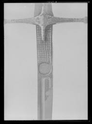 | Keywords: Sabel, kililj, turkiskt kulturområde, klingan 1500-tal, fäste kompletterat, Centraleuropa 1600-1650 - Livrustkammaren - 60799.tif Fäste korsformigt kappa i form av ett gjutet och reliefsnidat kraftigt lejonhuvud av förgyllt silver Pareranordning av guldinlagt mörkanlöpt stål bestående av raka parerstänger med fyrsidigt tvärsnitt och med rundat skivformiga ytterändar raka styrskenor Pareranordningens guldinläggning i form av bladornament arabesker och på parerstängernas sidor arabiska inskriptioner <br/>Kavelklädsel av purpurfärgad silkesammet på ut- och insidan två nithuvuden i form av gravyrmönstrade fyrbladiga rosor <br/><br/>Klinga av kilijtyp eneggad med cirka 245 mm lång tvåeggad jelman och plan klingrygg På båda sidor av bakpartiet ett i guld inlagt fält med ytmönster av små tätt liggande trianglar avslutad med en rundoval medaljong vari arabisk inskription Ovanför medaljongen en kraftig hålkäl med omböjt basparti hålkälen följer klingans spetsparti Utmed sidorna av hålkälens övre omböjda del ett mot eggsidan konturerat i guld inlagt rankmönster På båda sidorna vid ryggkanten närmast jelmanen ett mot eggsidan konturerat i guld inlagt rankmönster På båda sidorna vid ryggkanten närmast jelmanen ett konturerat ytmönster av i guld inlagda trianglar av samma typ som vid klingbasen original caption end other date century 16 steel b12 - blankvapen - fäste och klinga material stål - silver b4 - blankvapen - fästdekor material silver - velvet Färg purpur b4 - blankvapen - fästdekor material sammet - gold b45 - blankvapen - fäste och klingdekor material guld g 1260 size mm 37 klinga size mm 825 klinga size mm 200 size mm 1005 LRK Basutställning Persisk konst i Sverige 1973 Livrustkammarens basutställning 1978 place of origin original filename LN_B05877_008757 50250 inventory number LRK 13679 60799 CC0 Sabel kililj turkiskt kulturområde klingan 1500-tal fäste kompletterat Centraleuropa 1600-1650 - Livrustkammaren - 60799-negative tif <gallery caption Different images of same object > File Detalj yxblad ovanifrån dekor sabelkryss - Livrustkammaren - 8565 tif File Sabel kililj turkiskt kulturområde klingan 1500-tal fäste kompletterat Centraleuropa 1600-1650 - Livrustkammaren - 77825 tif File Sabel kililj turkiskt kulturområde klingan 1500-tal fäste kompletterat Centraleuropa 1600-1650 - Livrustkammaren - 17996 tif </gallery> Media contributed by LSH dim-with multiple size templates Sabre images from Livrustkammaren Kilij Media contributed by LSH 2013-10 |