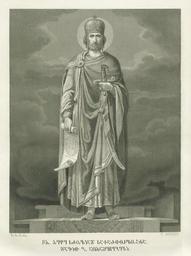 Keywords: Sabinin. David the Builder.jpg en St David the Builder King of Georgia ca 1882 საქართველ ს სამ თხე; St Petersburg 1882 Creator Mikhail Sabinin PD-old-100 Mikhail Sabinin David IV of Georgia Asomtavruli icons