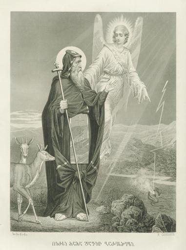 Keywords: Sabinin. St. David Garejeli.jpg en St David Garejeli 6th century დავით გარეჯელი ca 1882 საქართველ ს სამ თხე; St Petersburg 1882 Creator Mikhail Sabinin PD-old-100 Uploaded with UploadWizard Mikhail Sabinin David Garejeli Asomtavruli icons