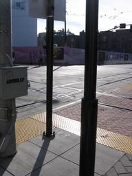 | Keywords: Sacramento tram track frog 3999.JPG en At the intersection of 8th and K Streets in Sacramento California USA; a tram track frog or line crossing is seen in a view looking southeast toward the rising sun from the northwest corner of the intersection 2012-12-08 10 55 23 own Pedro Xing 38 579982 -121 496662 cc-zero Uploaded with UploadWizard Sacramento Light Rail Tram rail crossovers Tactile paving in the United States | ||||