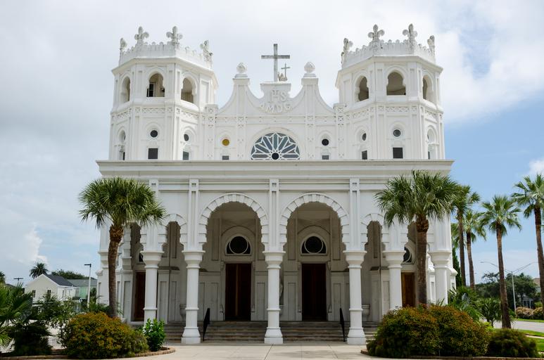 Keywords: sacred heart church church usa america texas galveston historically religion landmark catholic architecture building palm trees
