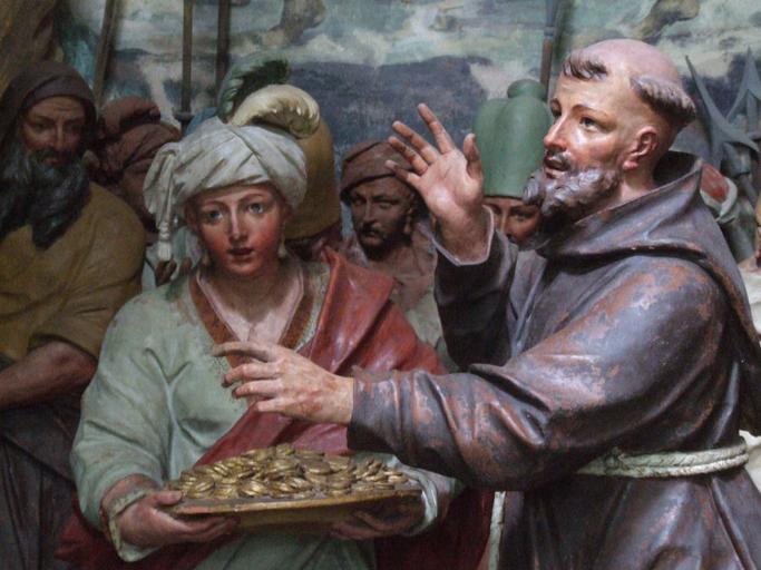 Keywords: Sacro Monte di Orta 035.JPG Life of St Francis of Assisi depicted in the series of chapels of the Sacro Monte di Orta in the comune of Orta San Giulio Piedmont Northern Italy Own Mattana 2009-04-09 Images by Mattana-Orta Italy Sacro Monte Orta “ Chapel 14 Saint Francis meets the Sultan of Egypt |