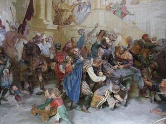 | Keywords: Sacro Monte di Orta 036.JPG Life of Francis of Assisi depicted in the series of chapels of the Sacro Monte di Orta in the comune of Orta San Giulio Piedmont Northern Italy Own Mattana 2009-04-09 Images by Mattana-Orta Italy Sacro Monte Orta “ Chapel 16 Return of dying Saint Francis to Assisi |