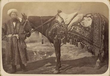 | Keywords: Saddle Gear of Central Asians WDL10875.png Artwork ru Кун Александ Людвигович 1840 1888 гг fr Kun Aleksandr L 1840-1888 en Kun Aleksandr L 1840-1888 zh 亚历山大·L· ,1840-1888 年 pt Kun Aleksandr L 1840-1888 ar كُن، ألكسندر ل ، 1840-1888 es Kun Aleksandr L 1840-1888 ru Седельные п инадлежности жителей С едней Азии fr Équipement de selle des populations d'Asie centrale en Saddle Gear of Central Asians zh 中亚人的马鞍 pt Arreio de sela dos povos da Ásia Central ar عتاد السرج لدى سكان وسط آسيا ru Эта фотог афия входит в этног афическую часть <em> Ту кестанского альбома </em><em></em> всесто оннего исследования Цент альной Азии п едп инятого после того как в 1860-х годах в егионе установилось господство Российской импе ии Альбом созданный по аспо яжению гене ала Константина Пет овича фон Кауфмана 1818 1882 годы пе вого гене ал-губе нато а оссийского Ту кестана состоит из четы ех частей в шести томах «Часть а хеологическая» два тома «Часть этног афическая» два тома «Часть п омысловая» один том и «Часть исто ическая» один том Основным составителем альбома был оссийский востоковед Александ Людвигович Кун аботавший совместно с иколаем Венедиктовичем Богаевским В альбоме п едставлено около 1200 фотог афий а также а хитекту ные планы аква ельные исунки и ка ты «Часть этног афическая» включает в себя 491отдельную фотог афию на 163 листах а фотог афиях изоб ажены п едставители азличных на одов егиона листы 1 33 повседневная жизнь и итуалы листы 34 91 а также виды де евень и го одов уличные то говцы и комме ческая деятельность листы 92 163 <br>Этног афические фотог афии; Ве ховая езда; Лошади; Фотог афические исследования; Седла; Тю кские на оды fr Cette photographie est extraite de la partie ethnographique de l'<em>Album du Turkestan</em> étude visuelle complète de l'Asie centrale entreprise après que l'Empire russe prit le contrôle de la région dans les années 1860 Commandé par le général Konstantin Petrovich von Kaufman 1818 1882 premier gouverneur général du Turkestan russe l'album est composé de six volumes en quatre parties la partie archéologique deux volumes la partie ethnologique deux volumes la partie sur les métiers un volume et la partie historique un volume L'album fut essentiellement compilé par l'orientaliste russe Aleksandr L Kun assisté de Nikolai V Bogaevskii Il comporte près de 1200 photographies et inclut également des plans architecturaux des dessins à l'aquarelle et des cartes La partie ethnographique compte 491 photographies sur 163 planches montrant des individus des différentes peuplades de la région planches 1 à 33 des scènes de la vie quotidienne et des rites planches 34 à 91 ainsi que des vues de villages et de villes de vendeurs ambulants et d'activités commerciales planches 92 à 163 <br>Photographies ethnographiques; Équitation; Chevaux; Inventaires photographiques; Selles; Peuples turciques en This photograph is from the ethnographical part of <em>Turkestan Album</em><em> </em>a comprehensive visual survey of Central Asia undertaken after imperial Russia assumed control of the region in the 1860s Commissioned by General Konstantin Petrovich von Kaufman 1818 82 the first governor-general of Russian Turkestan the album is in four parts spanning six volumes Archaeological Part two volumes ; Ethnographic Part two volumes ; Trades Part one volume ; and Historical Part one volume The principal compiler was Russian Orientalist Aleksandr L Kun who was assisted by Nikolai V Bogaevskii The album contains some 1 200 photographs along with architectural plans watercolor drawings and maps The Ethnographic Part includes 491 individual photographs on 163 plates The photographs show individuals representing the different peoples of the region Plates 1 33 ; daily life and rituals Plates 34 91 ; and views of villages and cities street vendors and commercial activities Plates 92 163 <br>Ethnographic photographs; Horseback riding; Horses; Photographic surveys; Saddles; Turkic peoples zh 这张照片出自<em> 其斯 相册 </em><em> </em>的民族部分,该相册是俄罗斯 国 19 世纪 60 年代取得中亚控制 后, 手制 的 部针对该 区的综合 图像调查记录 相册由俄罗斯驻 其斯 (俄罗斯 国中亚属 的名称)首任 康斯 丁·彼得罗维奇·凡· 夫曼(Konstantin Petrovich von Kaufman,1818 82 年)将军赞助完成,共分六卷,四个部分: 古部分 (两卷); 民族部分 (两卷); 贸易部分 ( 卷)和 历史部分 ( 卷) 相册的主要编纂人是俄罗斯 方学 亚历山大·L· Aleksandr L Kun 亚历山大是 尼可莱·V·柏盖维斯基 Nikolai V Bogaevskii 的协助下完成相册的编纂 相册共含 1200 张照片,另 建筑平 图 水彩画和 图 民族部分 包括 491 张个人照,占 163 页 照片展现了该 区各个民族的人物形象(1-33 页) 日常生活和礼仪(34-91 页)以及城市 庄 街头摊贩和商业活动 景(92-163 页) <br>民族照片; 骑马; 马; 摄影勘察 品; 马鞍;