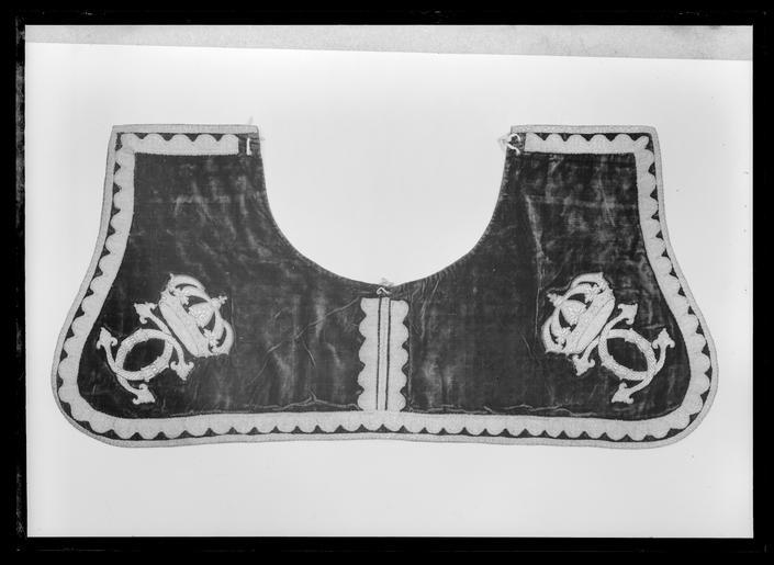 | Keywords: Sadeltäcke, Sverige 1600-talets slut - Livrustkammaren - 35000.tif LSH artwork sv Sadeltäcke av blå sammet kantad med guldgaloner varav den inre är uddig Sadeltäcket delas i mitten av uddiga guldgaloner På sidorna krönta spegelmonogram C Karl XII guldbroderi i relief Sadeltäcket är fodrat med blått linne På baksidan finns tre snörningar med vita läderremmar original caption end other date century 17 gold thread - gold - velvet Färg blå material sammet size mm 540 1100 LRK Peter von Düben Överstelöjtnant Ulrik Vilhelm von Düben friherre place of origin original filename LN_B04674_007554 45643 inventory number LRK 9118 35000 CC0 Sadeltäcke Sverige 1600-talets slut - Livrustkammaren - 35000-negative tif <gallery caption Different images of same object > File Sadeltäcke Sverige 1600-talets slut - Livrustkammaren - 27219 tif File Sadeltäcke Sverige 1600-talets slut - Livrustkammaren - 43810 tif </gallery> <gallery caption Related objects > File Pistolhölsterkappa Sverige 1600-talets slut - Livrustkammaren - 43558 tif LRK 9119 </gallery> Horse equipment Media contributed by LSH 2015-11 |