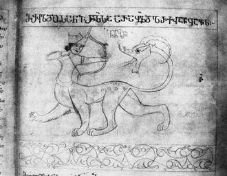 Keywords: Sagittarius (Georgian MSS, 1188).jpg en Sagittarius from a 12th-century Georgian manuscript ამირა აშვილი შ ქართული ხელ ვ ების ისტ რია Tbilisi 1971 anonymous 1188 PD-old-100 Sagittarius astrology Astronomical Treaty