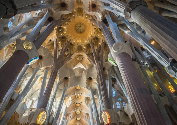 Keywords: sagrada familia cathedral barcelona architecture church famous religion catholicism landmark spain gothic construction europe christianity interior ceiling