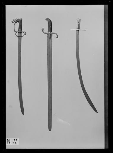 | Keywords: Saif, arabiskt kulturområde, Klingan europeisk (enl.inv 1867 indisk) - Livrustkammaren - 69267.tif Bygelfäste med parerstänger av förgyllt stål med kantiga päronformiga ändar böjda i rak vinkel den bakre nedåt den främre uppåt Den senare förlängd som handbygel och något svängd Två fingerbyglar vars ändar förenas av en parerring på utsidan Krysset neddraget i en spets <br/><br/>Kaveln snidad av mörkt horn med ovalt tvärsnitt upptill framåtböjt och konturerat med genomgående hål På ovansidan genombrutet beslag av silver med graverad dekor på vilket löper en rund ten av stål fäst i tången Kaveln nedtill beslagen med niellerat och punsat silver <br/><br/>Klinga av stål 32 5 mm bred svagt böjt eneggad till det 204 mm långa tvåeggade spetspartiet med tre hålkälar två längre en kortare längs ryggen Klingan ornerad på starka delen på båda sidor med etsade orientaliska ornament och inskriptioner På insidan stämpel med två motställda taggiga C-n omgivna av prickar original caption steel b12 - blankvapen - fäste och klinga material stål - horn b6 - blankvapen - kavel och kavelklädsel material horn - silver b1 - blankvapen - fäste material silver size mm 910 size mm 775 klinga size mm 32 klinga size mm 139 g 860 LRK place of origin original filename LN_B04938_007818 43824 inventory number LRK 7236 69267 CC0 Saif arabiskt kulturområde Klingan europeisk enl inv 1867 indisk - Livrustkammaren - 69267-negative tif <gallery caption Different images of same object > File Sabel Polen ca 1600 - Livrustkammaren - 43129 tif </gallery> ImageNote 1 1750 647 925 5264 4961 6680 2 Pallasch LRK 7529 1921 ImageNoteEnd 1 ImageNote 2 424 669 881 4517 4961 6680 2 Saif LRK 7236 ImageNoteEnd 2 ImageNote 3 2988 669 1438 4383 4961 6680 2 Sabel typ Batorowka Polen 1600-t början Ägare Gustav II Adolf av Sverige LRK 7435 1881 Польская сабля бато овка начало 17 в П инадлежала Густаву II Адольфу инв номе LRK 7435 1881 ImageNoteEnd 3 Media contributed by LSH dim-with multiple size templates Sabre images from Livrustkammaren Sword images from Livrustkammaren Arabic sabres Media contributed by LSH 2013-10 |