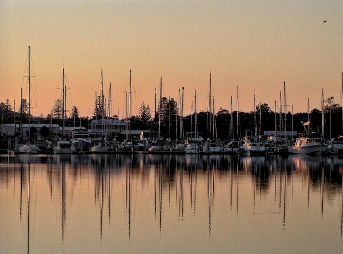 Keywords: sailboats harbor port boats seaside water dusk sailing sunset yacht