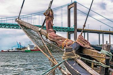 Keywords: sailing boat bug port baltic sea gothenburg sweden bridge älvsborgsbron sail dew seafaring anchor canvas great network