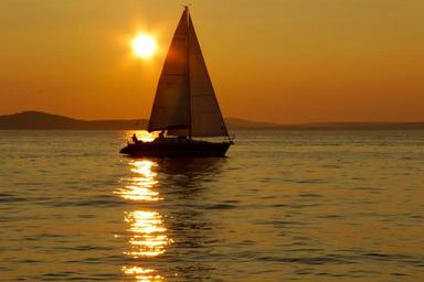 Keywords: sailing boat sunset sea surface reflection yellow summer croatia