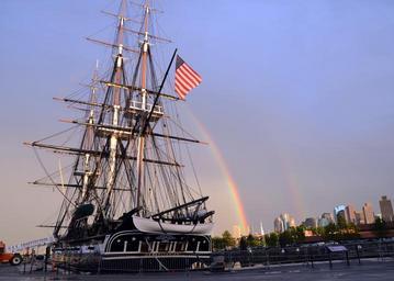 Keywords: sailing ship ship uss constitution rainbow frigate historic sky colorful scenic landscape sunny city urban harbor
