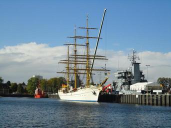 Keywords: sailing vessel gorch fock training ship navy port kiel water baltic sea