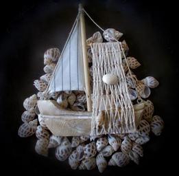 Keywords: sailing vessel mussels fishing net decoration network boot ship drift wood driftwood maritime shell coast sea