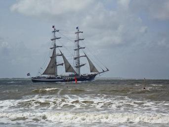 Keywords: sailing vessel rough seas windy stormy ship north sea coast norderney masts island of norderney beach