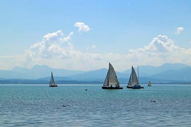 Keywords: sailing vessel sailing boat boot lake blue waters nature clouds coast holiday recovery water rest idyll atmospheric