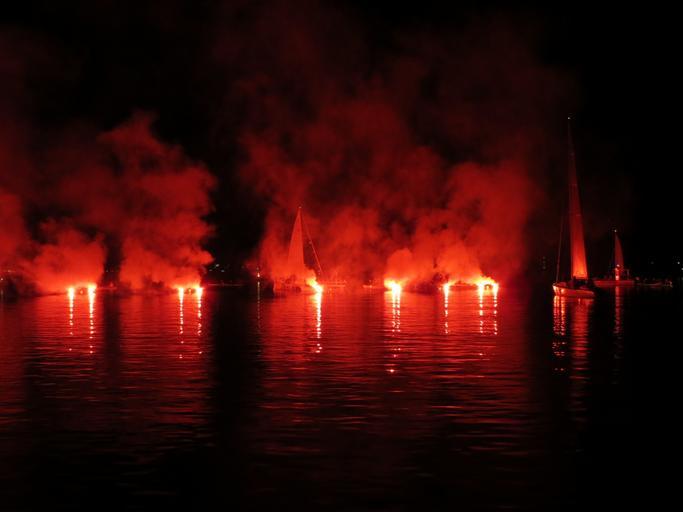 Keywords: sailor torches lights lake in flames water boats fireworks tegernsee