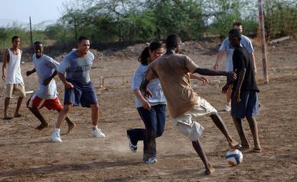 | Keywords: Sailors enjoy a game of soccer in Djibouti DVIDS55513.jpg en Sailors going through chief petty officer transition and other chief petty officers enjoy a game of soccer Aug 27 at a boys orphanage in Djibouti Combined Joint Task Force-Horn of Africa will hold a pinning ceremony for the new chief petty officers Sept 20 2007-08-27 Chief Petty Officer Mary Popejoy https //www dvidshub net/image/55513 070827-N-+++++-081 2007-09-06 11 58 DJIBOUTI DJ PD-USGov-Military-Navy Combined Joint Task Force - Horn of Africa Images from DoD uploaded by Fæ |