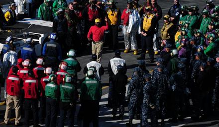 | Keywords: Sailors get training during general quarters. (8570978029).jpg NORFOLK March 13 2013 Chief Warrant Officer Albert Steward the ship's air boatswain addresses Sailors following a general quarters drill aboard the aircraft carrier USS George H W Bush CVN 77 George H W Bush is conducting in port training operations U S Navy photo by Mass Communication Specialist 2nd Class Timothy Walter/Released 130313-N-FU443-493 Join the conversation http //www facebook com/USNavy www facebook com/USNavy http //www twitter com/USNavy www twitter com/USNavy http //navylive dodlive mil navylive dodlive mil https //www flickr com/photos/usnavy/8570978029/ Sailors get training during general quarters 2013-03-13 18 10 https //www flickr com/people/56594044 N06 Official U S Navy Page from United States of America PD-USNavy Official U S Navy Imagery https //flickr com/photos/56594044 N06/8570978029 2016-12-14 04 37 19 United States Government Work USS George H W Bush CVN-77 Military training Files from the U S Navy Flickr stream Files uploaded by Reguyla People of the United States Navy |