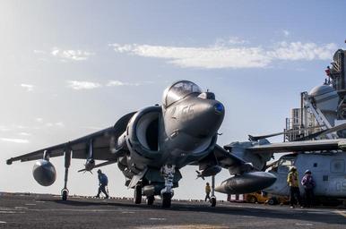 | Keywords: Sailors maneuver an AV-8B Harrier on the flight deck of the USS Wasp Sept. 21, 2016. (29761494722).jpg MEDITERRANEAN SEA Sept 21 2016 Sailors maneuver an AV-8B Harrier from the 22nd Marine Expeditionary Unit MEU on the flight deck of the amphibious assault ship USS Wasp LHD 1 Sept 21 2016 The 22nd MEU embarked on Wasp is conducting precision air strikes in support of the Libyan Government of National Accord-aligned forces against Dash targets in Sirte Libya as part of Operation Odyssey Lightning U S Navy photo by Mass Communication Specialist 3rd Class Rawad Madanat/Released 160921-N-JW440-097 Join the conversation http //www navy mil/viewGallery asp www navy mil/viewGallery asp http //www facebook com/USNavy www facebook com/USNavy http //www twitter com/USNavy www twitter com/USNavy http //navylive dodlive mil navylive dodlive mil http //pinterest com pinterest com https //plus google com plus google com https //www flickr com/photos/usnavy/29761494722/ Sailors maneuver an AV-8B Harrier on the flight deck of the USS Wasp Sept 21 2016 2016-09-21 11 53 https //www flickr com/people/56594044 N06 Official U S Navy Page from United States of America MC3 Rawad Madanat/USS Wasp LHD 1 Attribution License IPTC Caption-Abstract U S Navy photo PD-USGov-Military-Navy Official U S Navy Imagery https //flickr com/photos/56594044 N06/29761494722 2016-09-24 03 31 10 cc-by-2 0 160921-N-JW440-097 Navy AV-8B Harrier II US Marine Corps Aboard USS Iwo Jima LHD-7 Files from the U S Navy Flickr stream Photographs taken on 2016-09-21 September 2016 in Florida Taken with Nikon D90 USS Wasp LHD-1 flight deck Marine Medium Tiltrotor Squadron 264 |