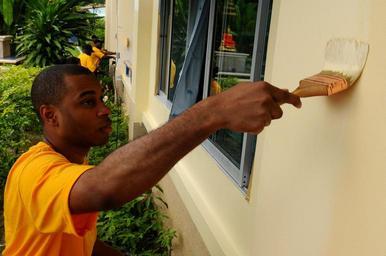 | Keywords: Sailors and Marines play football with children in Thailand 110504-N-IC111-134.jpg en Petty Officer 3rd Class Malcolm Williams cryptological technician technical from Houston assigned to the aircraft carrier USS Ronald Reagan paints the Youth Football Home school building during a community service project Ronald Reagan is currently anchored in Makham Bay Thailand for a scheduled port visit Photo by Petty Officer 3rd Class Kevin B Gray 2011-05-04 Kevin Gray https //www dvidshub net/image/397700 110504-N-IC111-134 2011-05-05 01 04 THALANG PHUKET TH PD-USGov-Military-Navy USS Ronald Reagan CVN-76 Images from DoD uploaded by Fæ |