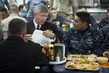 | Keywords: Sailors participate in San Francisco Fleet Week 2012 121005-N-SK590-094.jpg en Aviation Boatswain's Mate Handling 3rd Class Fernando Hinostroza talks to Vice Adm Gerald Beaman commander of U S 3rd Fleet on the mess decks of the amphibious assault ship USS Makin Island LHD 8 during San Francisco Fleet Week San Francisco Fleet Week is scheduled from Oct 3-8 and brings more than 2 500 sailors Marines and Coast Gaurdsmen from four ships to the city of San Francisco in order to highlight the personnel technology and capabilities of the sea services The U S Navy has a 237-year heritage of defending freedom and projecting and protecting U S interests around the globe Join the conversation on social media using warfighting U S Navy photo by Mass Communication Specialist 3rd Class Tim D Godbee 2012-10-05 Petty Officer 2nd Class Timothy Godbee https //www dvidshub net/image/719607 121005-N-SK590-094 2012-10-11 07 17 SAN FRANCISCO CA US PD-USGov-Military-Navy Gerald R Beaman USS Makin Island LHD-8 Images from DoD uploaded by Fæ |