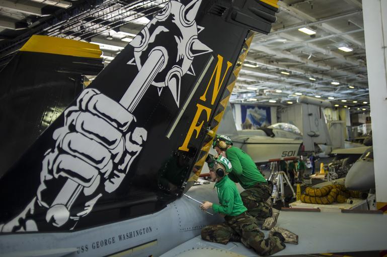 | Keywords: Sailors remove panels from Hornet aboard USS George Washington. (10193452885).jpg WATERS TO THE EAST OF THE KOREAN PENINSULA Oct 9 2013 Aviation Structural Mechanic 3rd Class Chantel Boudeau left from Perchtolsdorf Austria and Aviation Structural Mechanic Airman Ryan Eilenfeld from Galion Ohio remove panels from an F/A-18E Super Hornet from the Royal Maces of Strike Fighter Squadron VFA 27 in the hangar bay of the aircraft carrier USS George Washington CVN 73 George Washington and its embarked air wing Carrier Air Wing CVW 5 provide a combat-ready force that protects and defends the collective maritime interest of the U S and its allies and partners in the Indo-Asia-Pacific region U S Navy photo by Mass Communication Specialist 3rd Class Ricardo R Guzman/Released 131009-N-BX824-038 Join the conversation http //www facebook com/USNavy www facebook com/USNavy http //www twitter com/USNavy www twitter com/USNavy http //navylive dodlive mil navylive dodlive mil http //www flickr com/photos/usnavy/10193452885/ Sailors remove panels from Hornet aboard USS George Washington 2013-10-09 10 33 http //www flickr com/people/56594044 N06 Official U S Navy Page from United States of America MC3 Ricardo R Guzman/U S Navy U S Navy photo PD-USGov-Military-Navy Official U S Navy Imagery http //flickr com/photos/56594044 N06/10193452885 2014-04-03 13 02 52 cc-by-2 0 USS George Washington CVN-73 hangar deck Images from US Navy location Korean Straits Sailors from the United States Navy Files uploaded by Russavia Files uploaded by Russavia Strike Fighter Squadron 27 United States Navy |