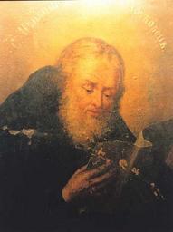 | Keywords: Saint Agathon the Wonderworker.jpg uk Saint Agathon the Wonderworker of Kyiv Caves Monastery Ukraine 14th cen Orthodox saint had a gift of prophesy Агафон чудотво ець - XIII - XIV ст Че нець Пече ського монасти я П еподобний Пам'ять 10 ве есня і 5 бе езня П о життя п п Агафона відомо з епітафії на а косольній іконі Вона повідомляє що п еподобний мав да п о оцтва і зцілень зціляв хво их покладанням ук Його мощі спочивають у Дальніх пече ах Kyiv Caves Monastery Ukraine Unknown monk soon after the 14th cen Saints of Kyiv Caves Monastery PD-old |
