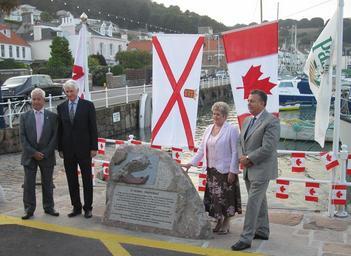 | Keywords: Saint Aubîn Paspédgia Jèrri Gaspé Septembre 2009 b.jpg Dêvouailement d'eune pièrre à la caûchie d'Saint Aubîn Saint Brélade Jèrri pouor ramémouaither les lians entre Jèrri et la Côte fondés sus la pêque et l'conmèrce d'la compangnie Robîn La pièrre stchulptée auve eune carte du Gaspé fut dêvouailée par l'Gouvèrneux et Madanme Ridgway; lé Sieur Michael Birt Bailli d'Jèrri fit un discours et l'Recteu d'Saint Brélade prêchit la bénédiction; lé Sieur Ralph Maûgi fut l'organnîsateu d'l'êchange des monuments entre Jèrri et Paspédgia 18 September 2009 unveiling of monument in Saint Aubin commemorating the historic links between Jersey and the Gaspé A corresponding monument has also been inaugurated in Paspébiac Inauguration d'un monument rappelant l'histoire des pêcheries jersiaises en Gaspésie fondées par le marchand jersiais Charles Robin de Saint-Aubîn own own photo 2009-09-18 Man vyi Own work all rights released Public domain ImageNote 1 2478 907 368 1500 3591 2622 2 Andrew Ridgway Lieutenant Governor of Jersey ImageNoteEnd 1 ImageNote 2 575 790 467 1473 3591 2622 2 Michael Birt Bailiff of Jersey ImageNoteEnd 2 ImageNote 3 238 943 310 1289 3591 2622 2 Ralph Mauger ImageNoteEnd 3 ImageNote 4 3160 323 332 1118 3591 2622 2 Paspébiac flag ImageNoteEnd 4 ImageNote 5 31 754 512 310 3591 2622 2 Official car of Lieutenant Governor ImageNoteEnd 5 ImageNote 6 2271 296 606 992 3591 2622 2 Canadian flag ImageNoteEnd 6 ImageNote 7 1544 364 498 1181 3591 2622 2 Jersey Flag ImageNoteEnd 7 Saint Aubin harbour Memorial stones in Jersey September 2009 Sir Andrew Peter Ridgway Photographs of flags of Jersey Photographs of the national flag of Canada Officials with flags Michael Birt 2009 in Jersey Maps of Gaspé Peninsula Flags of cities and regions in Quebec National flag of Canada with other flags Flags in Jersey |