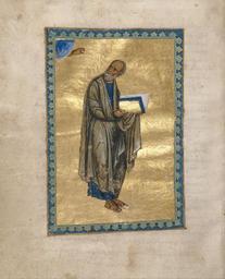 | Keywords: Saint John the Evangelist - Google Art Project (hAEjOiNImm TOQ).jpg In this Byzantine New Testament Saint John the Evangelist stands with a book representing his Gospel The naturalistic treatment of the figure displays the illuminator's debt to the artistic tradition of classical antiquity The treatment of the drapery gives a sense of the weight and volume of the stocky saint The careful modeling of the saint's flesh hair and beard reinforces the illusion of three-dimensionality But the illuminator was not only interested in recreating the visible world he also portrayed the spiritual dimension of his subject He shows John turning his head back over his shoulder to receive the inspiration for his Gospel from the blessing hand of God who emerges from an arc of heaven The plain gold background imbues the whole miniature with an otherworldly quality commons date commons medium commons dimensions commons institution Institution Getty Center commons location commons references commons object_history commons exhibition_history commons credit_line commons inscriptions commons notes commons accession_number commons source http //www getty edu/art/gettyguide/artObjectDetails artobj 3274 commons permission commons other_versions commons zoom core title Saint John the Evangelist core date dateCreated 1133 core location locationCreated Constantinople Istanbul Turkey core format w18 1 x h22 1 cm core type Folio core rights http //www getty edu/legal/copyright html core relation http //www getty edu/art/gettyguide/artObjectDetails artobj 3274 core format medium Tempera colors gold leaf gold paint and ink on parchment c-01c9b990 creator illuminator Unknown c-01c9b990 customtext terms_of_use http //www getty edu/legal/copyright html c-01c9b990 customtext subject God the Father Saint John the Evangelist google display_date 1133 google is_artproject TRUE google is_gigapixel FALSE google is_secured TRUE google partner/id 0000000001c9b990 google picasa_token BMIzFoxDLUAjzpTn-Jrv1zQcDcs special url_id hAEjOiNImm_TOQ google partner/name The J Paul Getty Museum special partner/name_no_lang The J Paul Getty Museum PD-old-100-1923 Google Art Project works by unknown artist Miniatures of Saint John the Evangelist MS LUDWIG II 4 Getty museum - Byzantine New Testament |