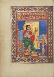 | Keywords: Saint Luke - Google Art Project (4198025).jpg The heading in gold and silver lettering identifies the text that follows as Luke's Gospel Inicium sancti evangelii secundum Lucam The beginning of the holy Gospel according to Luke Below Saint Luke at a lectern sharpens his quill in order to continue writing On the scroll unfurled before him appears a portion of his Gospel Erit in diebus Herodis In the days of Herod None 430703 Unknown /collection/the-j-paul-getty-museum/artwork/saint-luke-unknown/4198025/ Unknown illuminator /collection/the-j-paul-getty-museum/ The J Paul Getty Museum 343005 http //www getty edu/museum 3/8/2012 6 59 52 PM /collection/the-j-paul-getty-museum/artwork/saint-luke-unknown/4198025/ 1120 about 1120 - 1140 Saint Luke Tempera colors gold and silver on parchment True 229 4198025 True 1140 3/25/2012 5 01 43 AM lido getty edu-gm-obj3269 http //www getty edu/art/gettyguide/artObjectDetails artobj 3269 http //www getty edu/legal/copyright html Folio 1120 1150 Helmarshausen Germany Creation w165 x h229 cm about 1120 - 1140 False 0 693359375 Part saint-luke-unknown Saint Luke s 165 Tempera colors gold and silver on parchment Saint Luke http //www getty edu/legal/copyright html special url_id XgGIo93lhRfIgQ PD-old-100 Google Art Project works by unknown artist Miniatures of Saint Luke MS LUDWIG II 3 Getty museum - Gospel book from Helmarshausen |