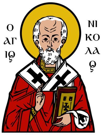 Keywords: Saint Nicholas of Myra.png Bad extraction SVG el Άγιος ικόλαος Αρχιε ίσκο ος ύρων της Λυκίας ο Θαυματουργός<br /><br /> Ο άγιος ικόλαος εικονίζεται στηθαίος γέρων στρογγυλογένης σχεδόν φαλακρός με έντονα ζυγωματικά στον καθιερωμένο εικονογραφικό τύ ο ροτομή σε στάση μετω ική ενδεδυμένος την αρχιερατική ενδυμασία Φορεί ερυθρό φαιλόνιο με κολάρο ου καλύ τει το λαιμό ίσω και στα λάγια αφήνοντας ακάλυ το μονάχα το μ ροστινό μέρος χρυσά ε ιμάνικα και τεφρόλευκο ωμοφόριο κοσμημένο με μεγάλους μαύρους σταυρούς Υψώνει το δεξί χέρι έμ ροσθεν του στήθους του ευλογών ενώ με το αριστερό κρατεί όρθιο κλειστό χρυσο οίκιλτο κώδικα ευαγγελίου Το άχος των σελίδων του ευαγγελίου είναι ορφυρό Την κεφαλή του αγίου εριβάλλει εγχάρακτος φωτοστέφανος 2014-05-28 15 04 36 http //openclipart org/detail/93889/saint-nicholas-by-ovideva Έργο αυτού ου το ανεβάζει based on work by ovideva cc-zero Uploaded with UploadWizard Saint Nicholas in heraldry Images from openclipart org Clip art of people |