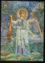 | Keywords: Saint Sofia Ohrid Fresco Postcard.jpg  Ф еска в Света София Ох ид Ангел от сцената Възнесение Господне на тавана scanned postcard 11 - 13 С author PD-old Paintings in St Sophia Church Ohrid Church ceilings in the Republic of Macedonia Frescoed ceilings |