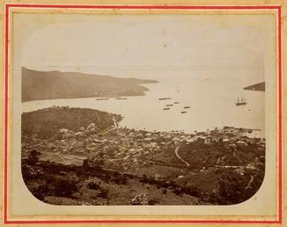 | Keywords: Saint Thomas Island, Danish Possession in the Antilles- View from the Brazilian Observatory with the Sandbank and the East Part of the Harbor and the City Charlotte Amalie WDL1753.png Artwork ru Б азильская аст ономическая комиссия fr Commission astronomique du Brésil en Brazilian Astronomical Commission zh 巴西天文委员会 pt Comissão Astronômica Brasileira ar المفوضية الفلكية البرازيلية es Comisión Astronómica Brasileña ru Ост ов Сент-Томас датские владения на Антильских ост овах вид с б азильской обсе вато ии включая песчаную отмель восточную часть бухты и го од Ша лотта-Амалия fr Île de Saint-Thomas territoire danois dans les Antilles vue prise depuis l'observatoire brésilien montrant le banc de sable la partie est du port et la ville de Charlotte Amalie en Saint Thomas Island Danish Possession in the Antilles View from the Brazilian Observatory with the Sandbank and the East Part of the Harbor and the City Charlotte Amalie zh 托马斯岛,安的列斯群岛的丹麦属 :从巴西观测 到的沙洲 海港 部和夏洛特阿马利亚城的景观 pt Ilha de São Tomás posse dinamarquesa nas Antilhas vista a partir do observatório brasileiro com o baixio a parte leste do porto e a cidade de Charlotte Amalie ar جزيرة سانت توماس، الأراضي الدنماركية بالأنتيل منظر من المرصد البرازيلي يضم الجرف الرملي والجزء الشرقي من الميناء ومدينة شارلوت أمالي ru Эта фотог афия соде жится в альбоме созданном в память об участии Б азилии в междуна одном наблюдении за п охождением Вене ы в 1882 году С этой целью Импе ато ская обсе вато ия пост оила на ост ове Сент-Томас в датской Вест-Индии сов еменные Аме иканские Ви гинские ост ова обсе вато ию названную в честь импе ато а Дома Пед у II 1825 1891 гг П охождение Вене ы п едставляет собой едкое аст ономическое явление в ходе кото ого Вене у п оходящую между Землей и Солнцем можно увидеть в дневное в емя на фоне солнечного диска П охождения Вене ы наблюдаются па ами с инте валом в восемь лет после чего следует пе е ыв п одолжительностью более столетия С XVII века аст ономы стали п оявлять к этому явлению особый инте ес поскольку оно давало возможность п именяя данные многочисленных наблюдений и сложные математические асчеты вычислить асстояние между Землей и Солнцем аст ономическую единицу Таким об азом п охождения 1874 и 1882 годов оказались в цент е п истального внимания научных к угов и общественности Данный альбом п едставляет собой часть коллекции Те езы К истины а ии из фондов ациональной библиотеки Б азилии Коллекция из 21 742 фотог афий соб анная импе ато ом Пед у II в течение его жизни и завещанная им национальной библиотеке включает в себя ши окий спект тем и от ажает достижения Б азилии и б азильцев в XIX веке азванная в честь импе ат ицы Те езы К истины а ии данная коллекция была в 2003 году включена в список национальных п оектов п ог аммы Ю ЕСКО Память ми а <br> алые Антильские ост ова; Ша лотта-Амалия Ви гинские ост ова ; Го ода и поселки; Гавани; Память ми а; аучные экспедиции; Ко абли; Вене а планета п охождение 1882 г fr Cette photographie est extraite d'un album commémorant la participation du Brésil à l'effort international visant à suivre le transit de Vénus en 1882 Pour ce projet l'Observatoire impérial établit un observatoire portant le nom de l'empereur Pierre II 1825-1891 sur l'île de Saint-Thomas dans les Indes occidentales danoises aujourd'hui les îles Vierges des États-Unis Le transit de Vénus est un événement astronomique rare qui se produit lorsque Vénus passe entre la Terre et le Soleil la rendant visible de jour par contraste sur le disque solaire Les transits surviennent par paire séparée de huit ans à des intervalles de plus d'un siècle partir du XVII<sup>e</sup> siècle les astronomes portèrent un intérêt particulier à ce phénomène qui leur donnait l'opportunité de déterminer à l'aide de nombreux calculs mathématiques complexes et observations la distance entre la Terre et le Soleil unité astronomique Les transits de 1874 et 1882 suscitèrent donc l'enthousiasme du public et de la communauté scientifique L'album fait partie de la collection Thereza Christina Maria de la Bibliothèque nationale du Brésil Composée de 21 742 photographies que l'empereur Pierre II réunit sa vie durant puis légua à la bibliothèque nationale la collection couvre divers sujets et détaille les réalisations du Brésil et de Br