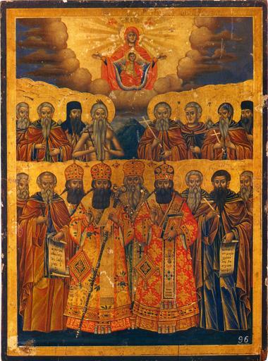 View Original:Saints_of_Mount_Athos_Icon_in_Protatos_Makarios_from_Galatista_1859.jpg (797x1074)
