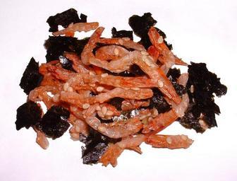 Keywords: Sakura ebi.jpg Cherry shrimp Sakura ebi a specialty of Donggang Taiwan Served with dried seaweed and sesame Own work from packaged product 2006-04-30 Shawnc Public domain Shawnc Sesame Shrimp or prawn dishes of Japan