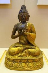 | Keywords: Sakyamuni, Tibet, 1644-1911 AD, gilt copper - Sichuan Provincial Museum - Chengdu, China - DSC04307.jpg en Exhibit in the Sichuan Provincial Museum 四 博物院 also known as the Sichuan Museum 251 Huanhua S Road Chengdu Sichuan China Photography was permitted in the museum without restriction This work is old enough so that it is in the public domain 2015-09-24 02 08 37 own Daderot other versions PD-old-100 cc-zero Tibetan sculptures in the Sichuan Provincial Museum | ||||