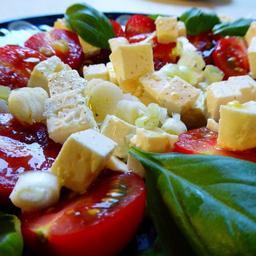 Keywords: salad cheese onion feta cheese tomatoes frisch starter food healthy meal delicious basil onion rings italian mediterranean